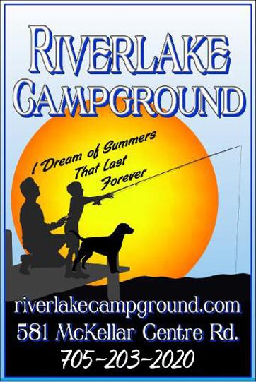 Riverlake Campground is 'that' place! Where time is in no hurry. Come discover our beautiful spacious Seasonal Trailer Sites on the Sunset Shores of Prestigious Lake Manitouwabing. Put Fishing, Boating, Swimming and Campfires on your 'to do' List.
